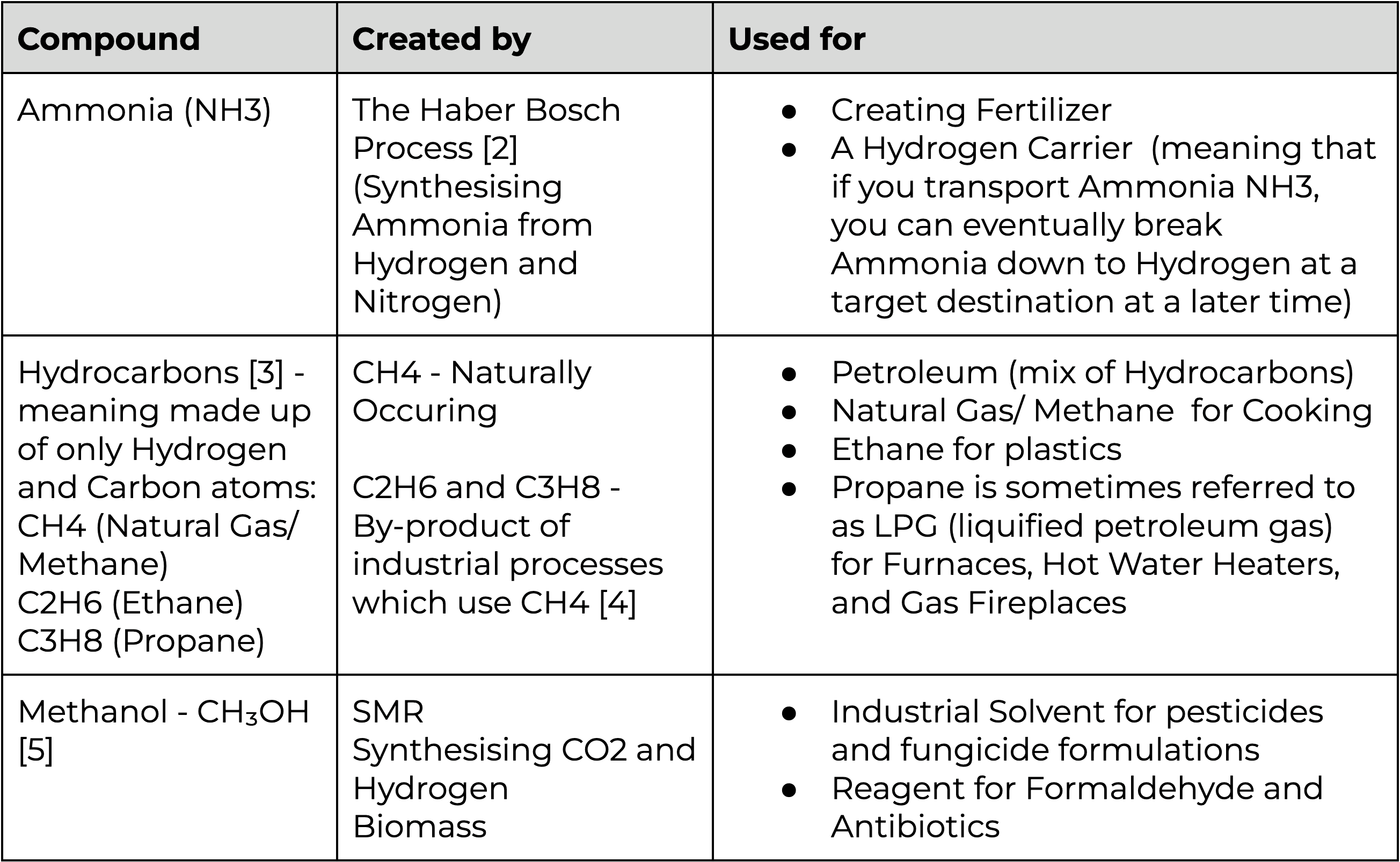You may be thinking - sure, what about hydrogen as a standalone element? Hydrogen by itself is useful too. The next section will explain to you how to think of hydrogen - due to hydrogen’s incredible versatility, we produce hydrogen, and utilize it for a range of purposes.