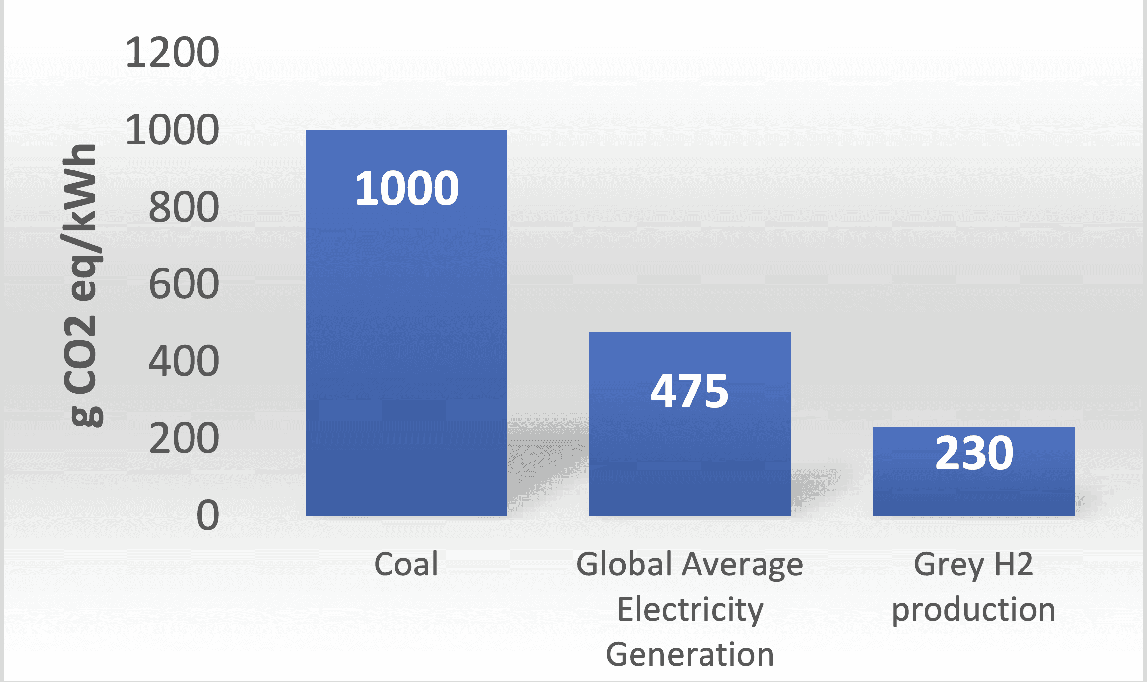 As the final point to the electrolysis challenge: globally we are currently adding between 300- 500 TW of renewable energy capacity each year. [12] For these new renewable energy sources, will replacing existing grey H2 generation with renewable electrolysis be the largest carbon abatement opportunity? The carbon footprint of each kg of hydrogen produced today is roughly 11.3 kg CO2 equivalent. [13] Based on electrolysis energy requirements, each kWh of renewable power towards green hydrogen therefore abates ~230 g CO2eq. If we compare this to the global average for all energy production, we can see that this additional renewable green capacity is better applied to offsetting existing electricity generation than it would be applied to replacing grey/blue H2 production [9; 14]: